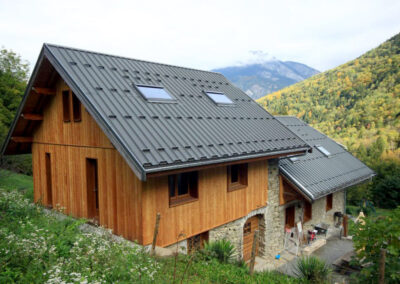Contrairement au parpaing ou à la pierre, le bois ne subit aucun tassement ni fissure. C’est un matériau sain et sûr qui agit comme régulateur thermique et hygrométrique : ni condensation ni atmosphère trop sèche.